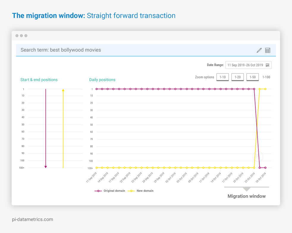 - Use daily data! Monitor the migratory window with daily SEO tracking – you can’t afford to wait a week for that report! A SEO platform like Pi can offer this type of granular tracking, to help you immediately identify any performance issues during the website migration process.